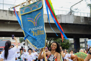 Este ano, à frente do grupo, estava Kelly Silva, trabalhadora da Fundação Julita e batuqueira regente do Maracatu Baque Atitude, ela conduziu grupo Raízes da Quebrada, composto por crianças e jovens beneficiados pelos programas da Fundação Julita, no cortejo que abriu a mobilização.